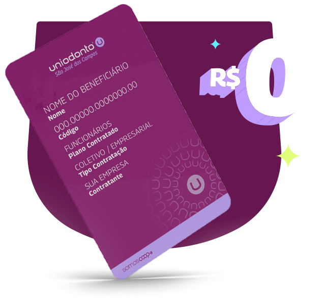 *Promoção válida de 1 de novembro a 30 de novembro de 2025 para contratação do plano da Uniodonto de São José dos Campos para Pessoa Jurídica (Essencial Exclusivo Corporativo e Plano Uniodonto Clínica Empresarial), com opções de vigência de 12, 24 e 36 meses a partir de 3 vidas e pagamento em boleto digital sem carência e para contratação dos planos para Pessoa Física: (Classic, Kids, Essencial Exclusivo e Clínica), com opções de vigência de 12, 24 e 36 meses e pagamento das mensalidades com cartão de crédito, débito, pagamento a vista e boleto digital, sem carência. Os valores/condições são divulgados em face da legislação vigente, que possibilita às cooperativas e operadoras de planos de saúde a divulgação dos preços de seus produtos (Leis nºs 5.764/71, 9.656/98 e 9.961/00). Os valores/condições consignados não tem correlação com aqueles recebidos pelos dentistas.