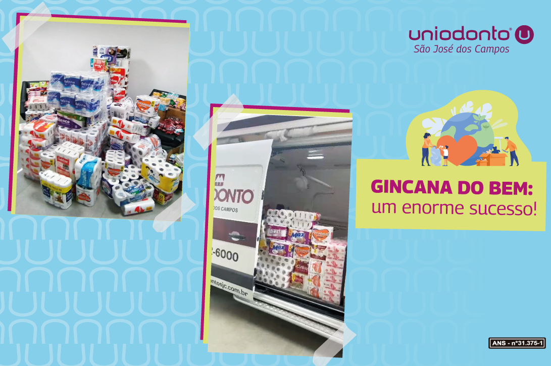 A Gincana do Bem, da Uniodonto de São José dos Campos, arrecadou em 3 dias mais de 3,3 mil itens de higiene para ajudar as vítimas das chuvas em São Sebastião. A participação maciça de colaboradores e dentistas da cooperativa odontológica possibilitou ultrapassar em muito a meta inicial de coletar 1.000 sabonetes e 500 rolos de papel higiênico.