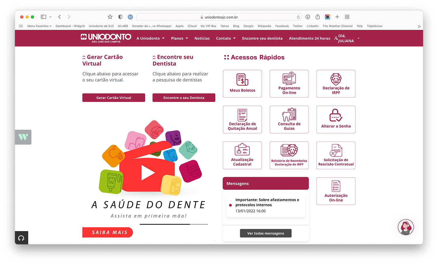 Para acessar a área restrita do beneficiário no site da Uniodonto de São José dos Campos, clique em Login no canto superior direito desta página.