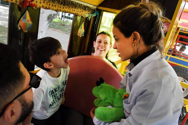 No dia 13, data do aniversário da Uniodonto, o Trem da Alegria levou prevenção de saúde bucal às crianças. Em passeios gratuitos pelo centro da cidade, os pequenos receberam da dentista Dra. Carolina Lobo orientações sobre escovação e cuidados com os dentes e ganharam um brinde exclusivo.